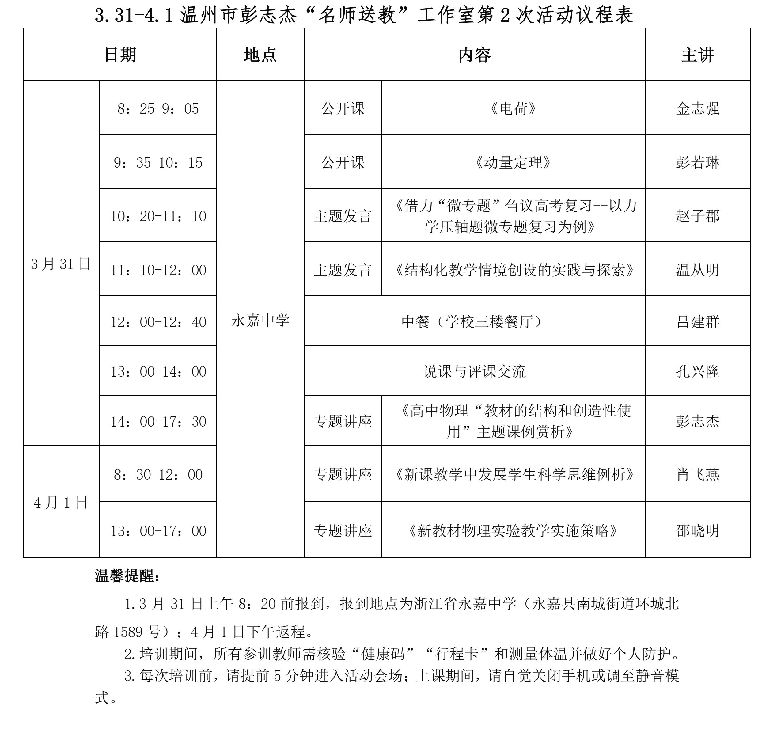 关于举行2021年温州市彭志杰“名师送教”工作室第2次活动的通知