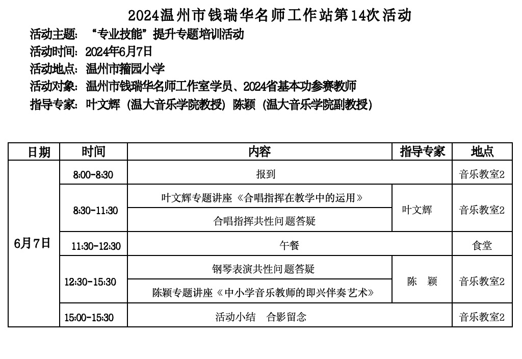 关于举行温州市钱瑞华名师工作室第14次活动的通知