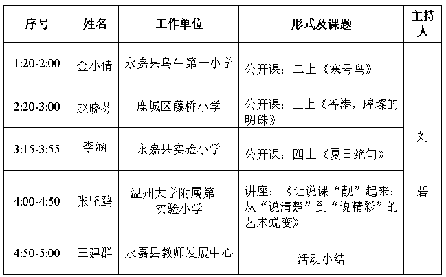 在 温州市永嘉县乌牛中心小学举行活动,时间    半    天​。